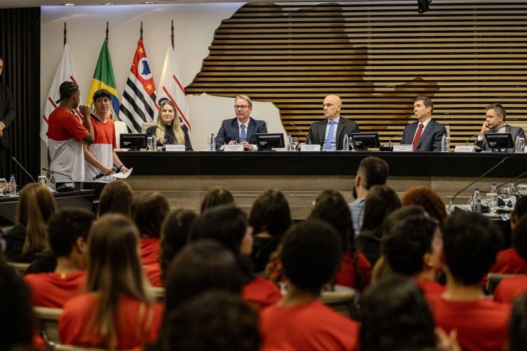 Após as apresentações e relatos dos projetos desenvolvidos pelos estudantes da Escola Sesi de Jundiaí, Rodrigo e Eduardo passaram a palavra ao ministro Alexandre de Moraes. Eles destacaram que, segundo pesquisas acadêmicas, muitas lideranças políticas iniciam sua trajetória ainda no ambiente escolar. Nesse sentido, a escola pode ser um espaço de incentivo ou de barreira para a formação de lideranças de grupos historicamente minorizados, como o das pessoas pretas.