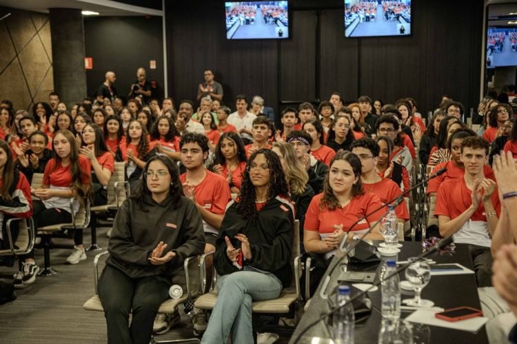 Dois estudantes do 3º ano do Ensino Médio deram voz à juventude. Rodrigo Novo, aluno do curso técnico de Eletroeletrônica e integrante da equipe de robótica Megazord — que representará o Brasil no Mundial de Houston — compartilhou uma vivência marcante. “Nossa escola montou kits STEAM para uma ONG que os levou até crianças e jovens de Angola. Essa iniciativa impactou mais de 500 crianças. Tive o prazer de ser o professor delas, à distância, por seis meses. É gratificante ver a evolução que tiveram, acessando algo que, muitas vezes, estaria fora do alcance”, disse.