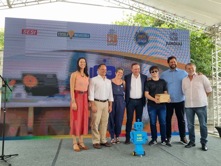 Representantes municipais e da Rede SESI-SP com o Fabinho, protótipo criado a partir do logo do Fab Lab Jundiaí, criado por aluno da Rede Municipal, em 2018O SESI-SP conta com 32 Fab Labs instalados em suas unidades escolares em todo o Estado, além de 99 Espaços Makers, um modelo reduzido e exclusivo para alunos da Rede SESI, que integra a grade curricular, com desenvolvimento de projetos que envolvam tecnologia, robótica, programação e incentivem a Cultura Maker entre os estudantes.